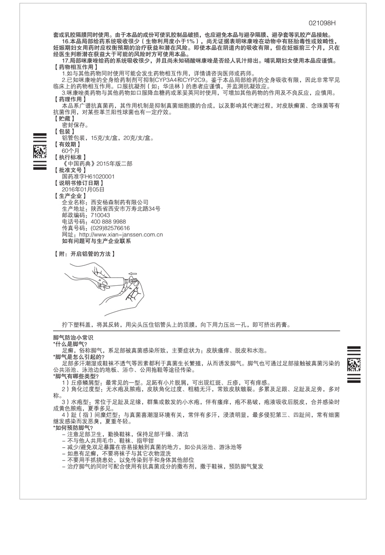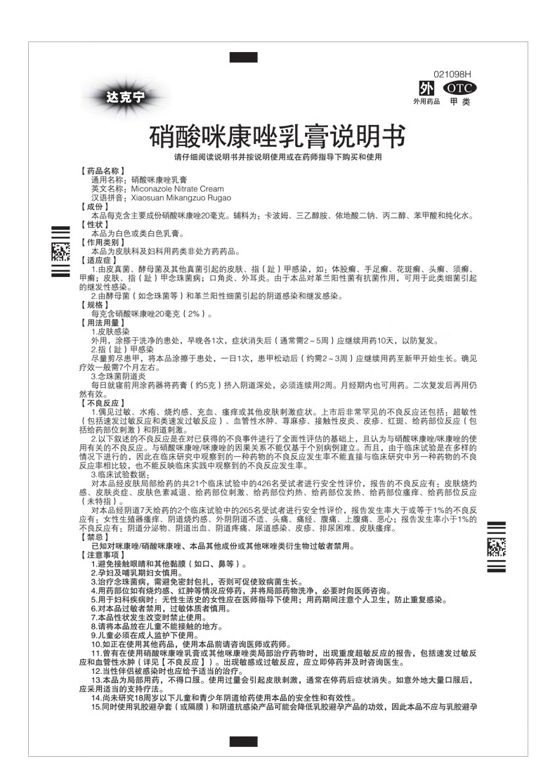 【规格】每克含硝酸咪康唑20毫克(2%)。