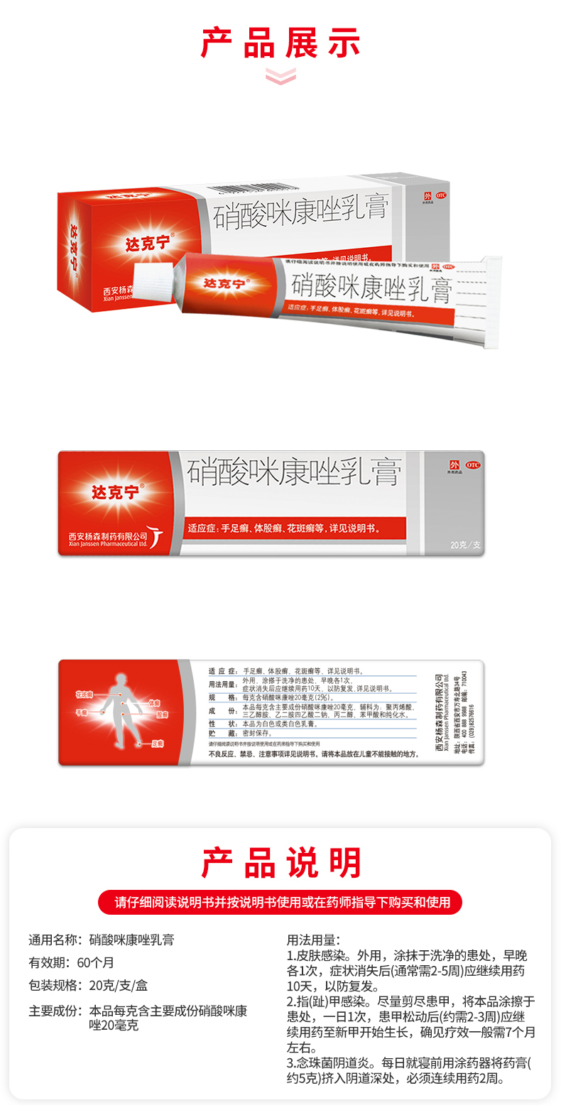 达克宁 硝酸咪康唑乳膏 20g/支 西安杨森制药有限公司