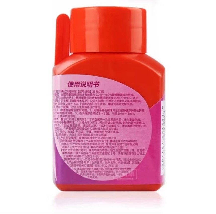 海氏海诺 医用酒精消毒棉球 25粒/瓶 青岛海诺生物工程有限公司